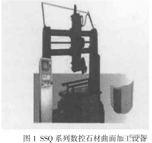 圖1為山東大學石材工程技術研究中心研制的SSQ系列數(shù)控石材曲面加工設備。該設備采用了可靠的三坐標數(shù)控系統(tǒng),刀具軸水平布置,鋸片或磨輪垂直切割。該設備可加工任意曲率、形狀的內、外曲面。