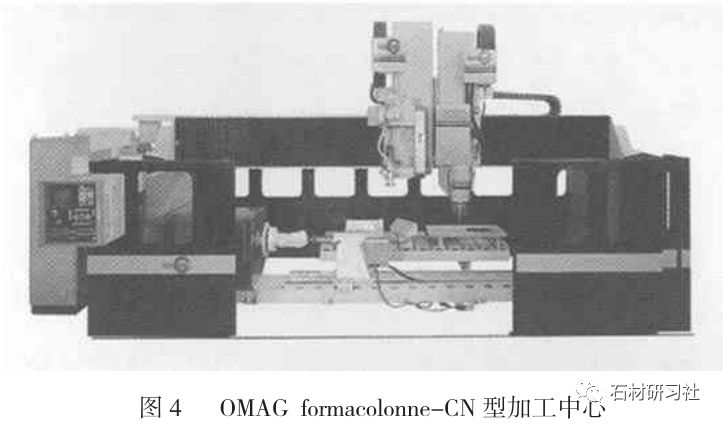 圖4 為意大利OMAG公司設計的formacolonne--CN型加工中心,該加工中心采用4軸聯(lián)動數(shù)字控制加工技術, 同時配有兩個工作頭。